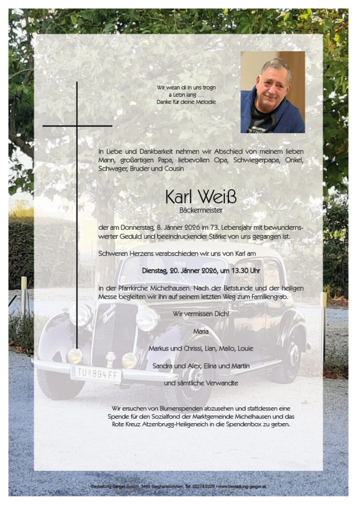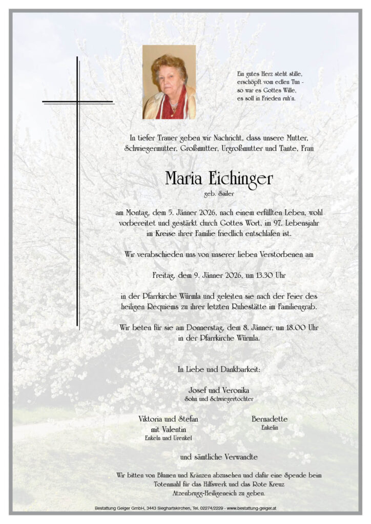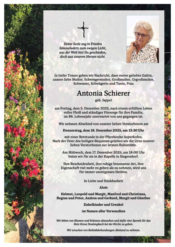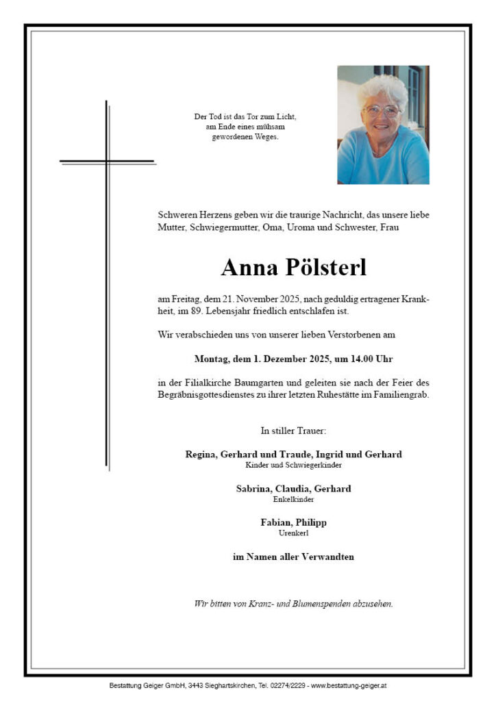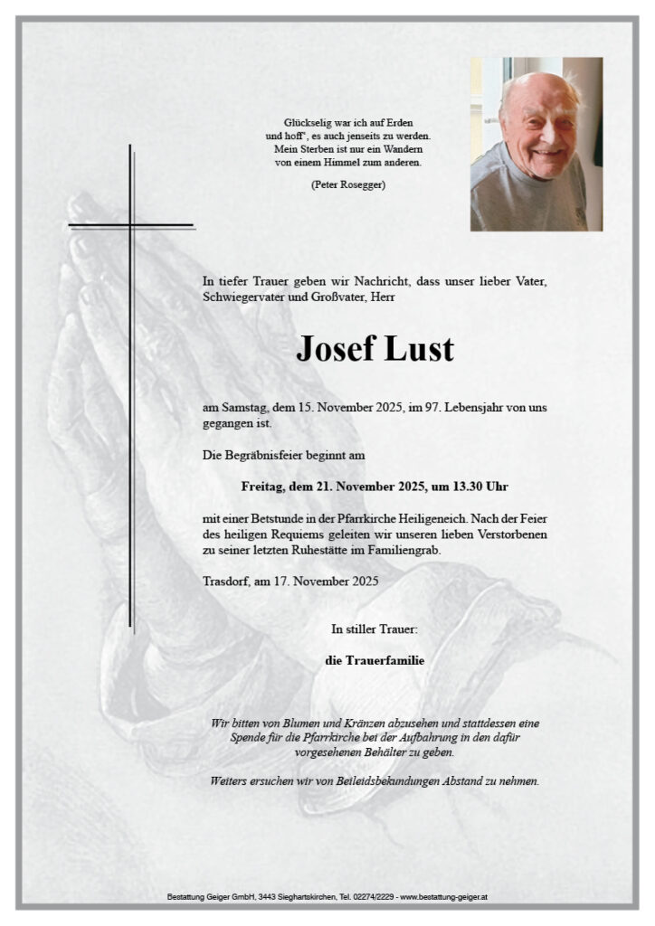 Hier finden Sie eine Übersicht über unsere aktuellen Trauerfälle im Bezirk Tulln und St. Pölten Umgebung.
