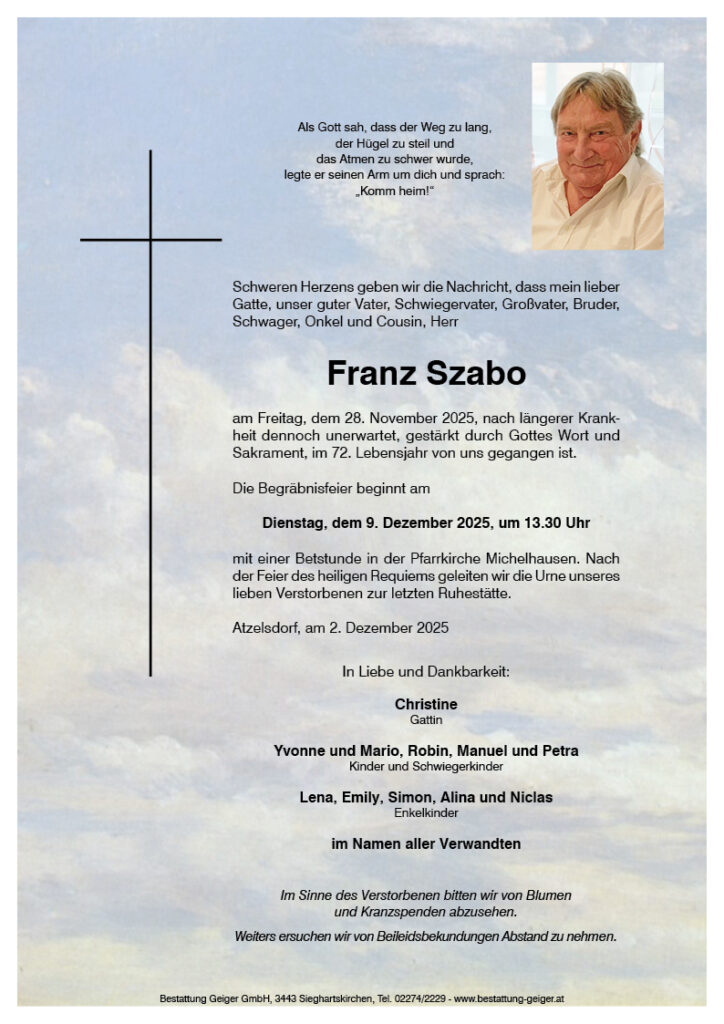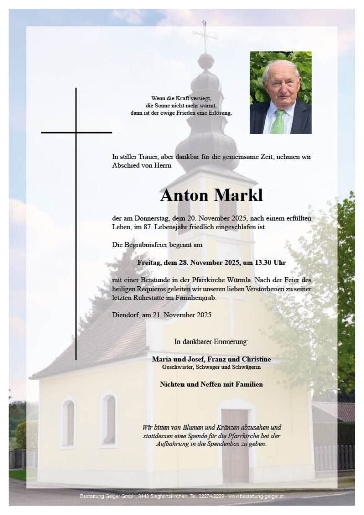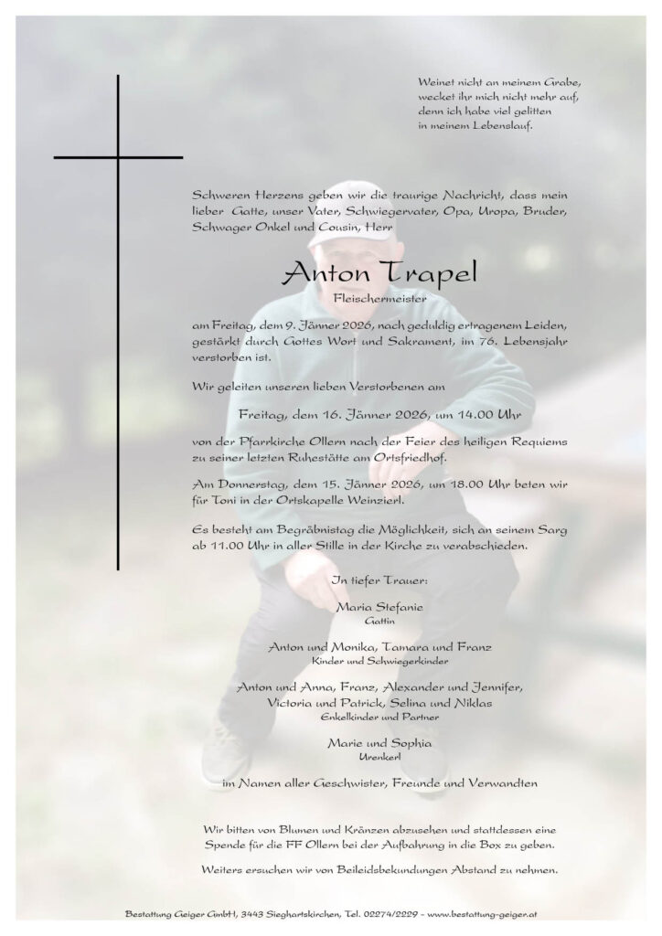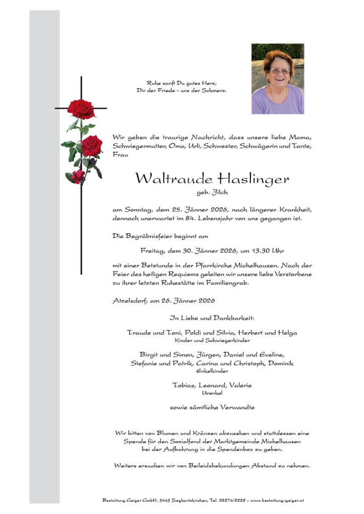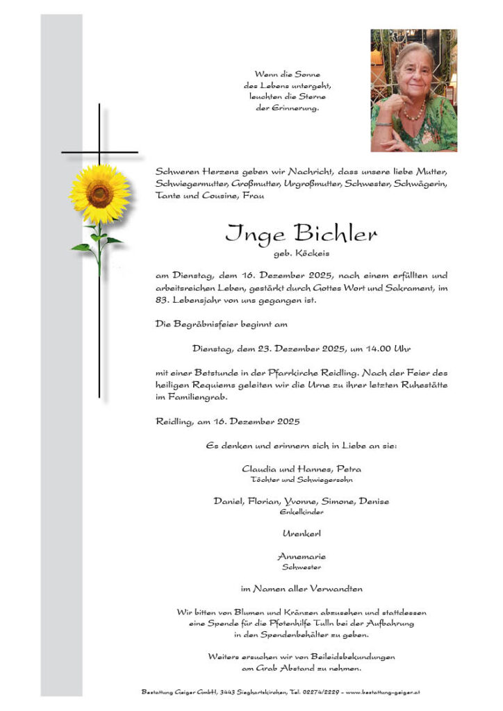 Hier finden Sie eine Übersicht über unsere aktuellen Trauerfälle im Bezirk Tulln und St. Pölten Umgebung.